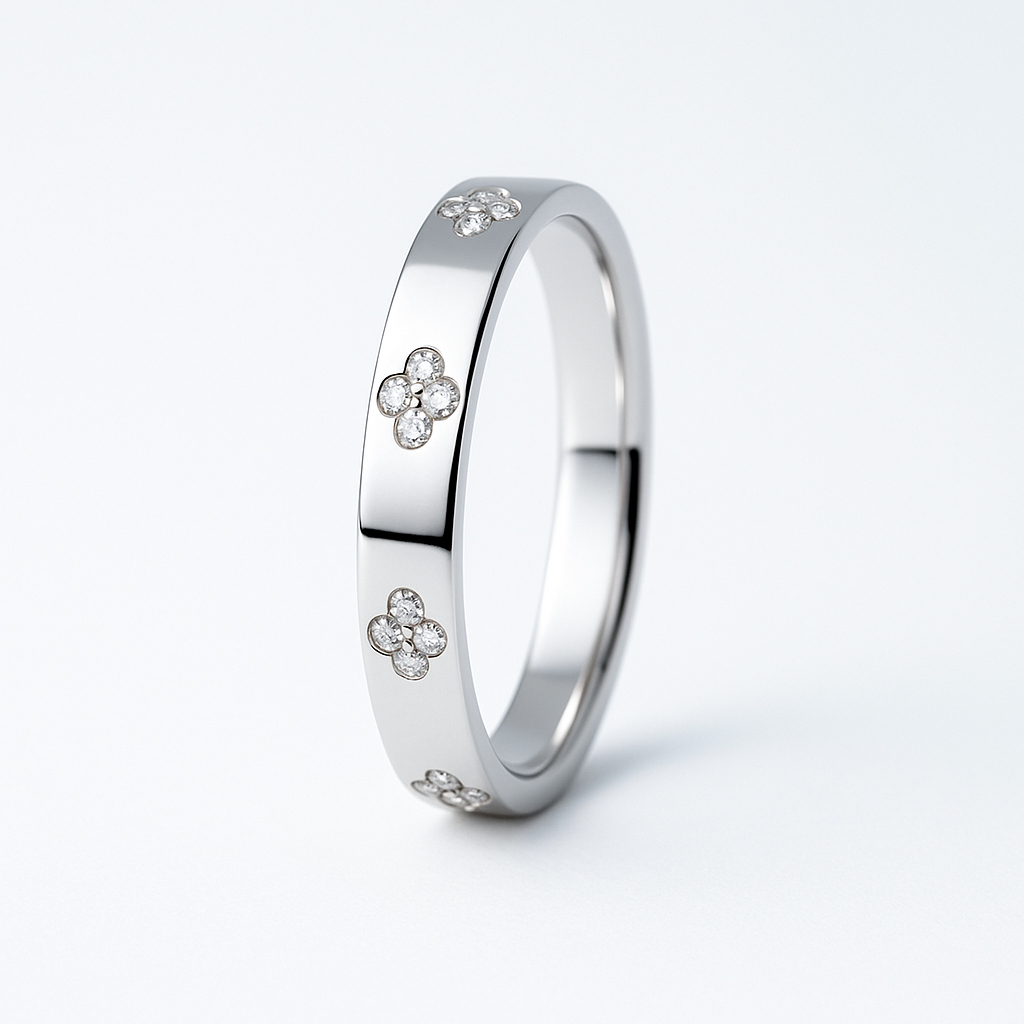 925 Stirling Silver Ring, with clover style set Cubic Zirconia stones.
