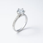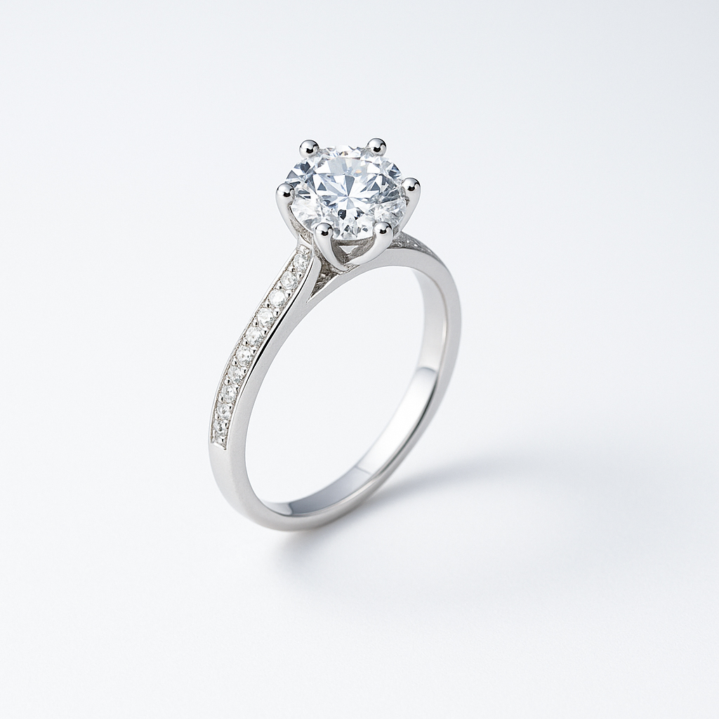 Classic Prong Set Brilliant Cut Cubic Zirconia Set In 925 Stirling Silver Ring with Smaller Stone Half Eternity Embellishments