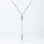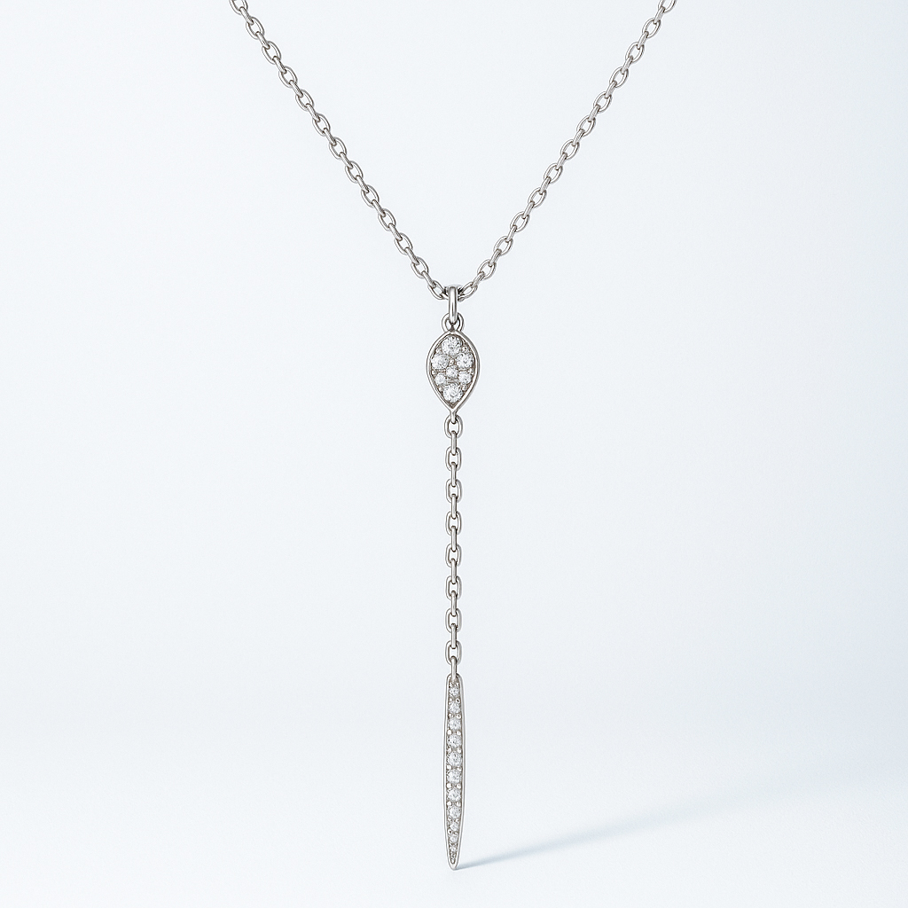 Exquisite 925 Silver Rhodium Plated, 1.4mm link chain Y shape drop bar necklace, featuring white Cubic Zirconia, designed for simple elegance.