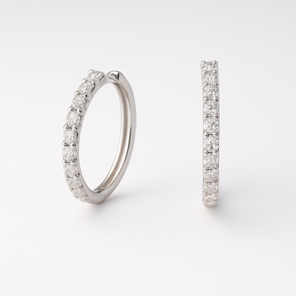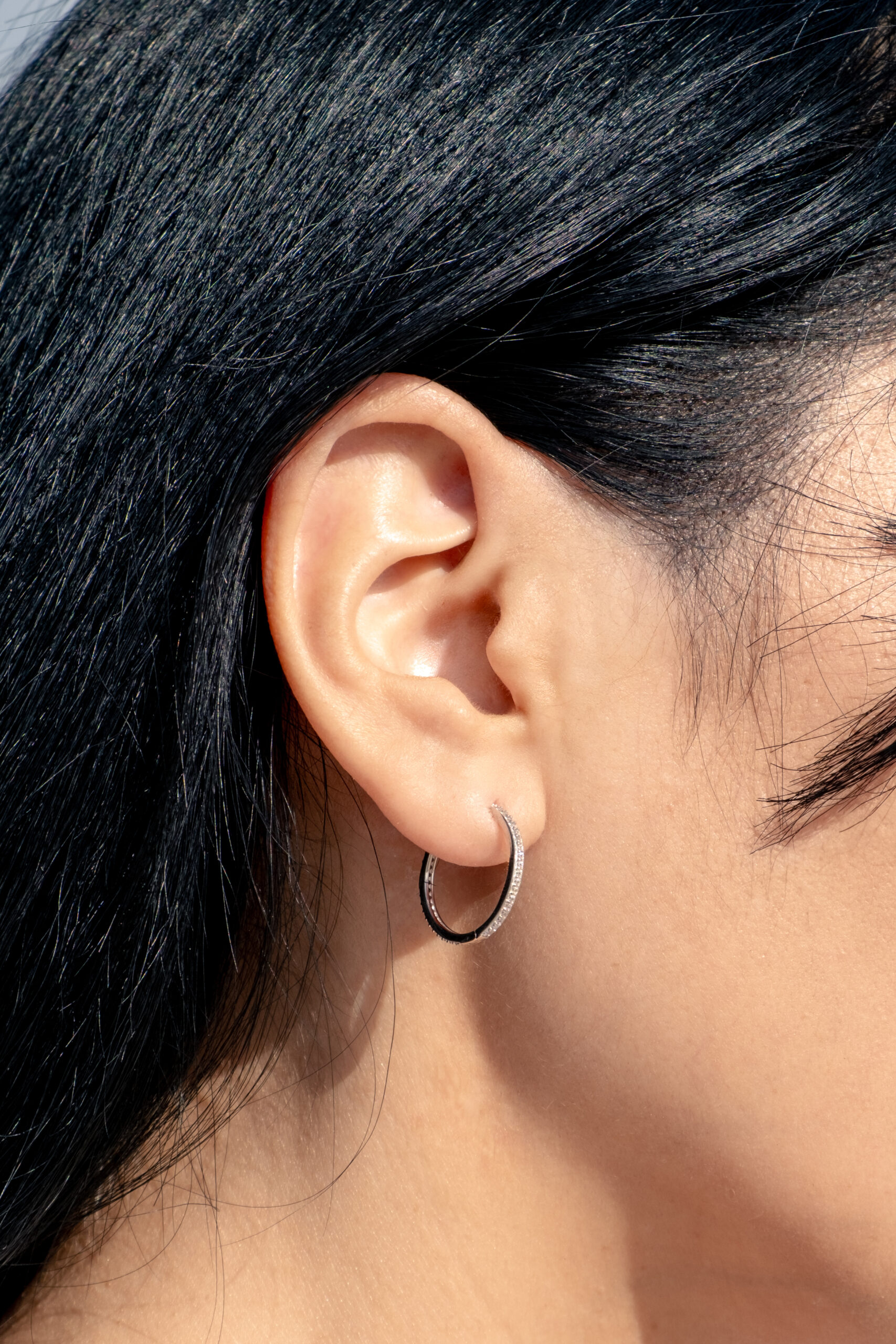 Stylish 925 silver rhodium plated white cubic zirconia hoop earrings, perfect for effortless elegance.