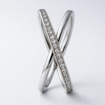 Elegant 925 Silver Rhodium Plated interlocking rings, with full eternity white Cubic Zirconia, a perfect statement piece.