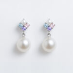 Fresh water Pearl drop earrings set in 925 silver with colourful cubic zirconia stones