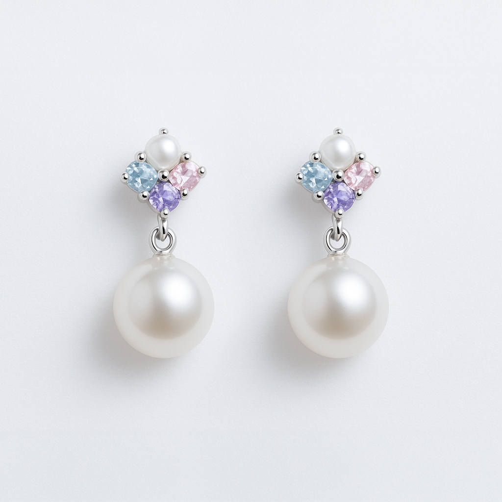 Women’s Earrings Freshwater Pearl 3 Stone Drop Earrings