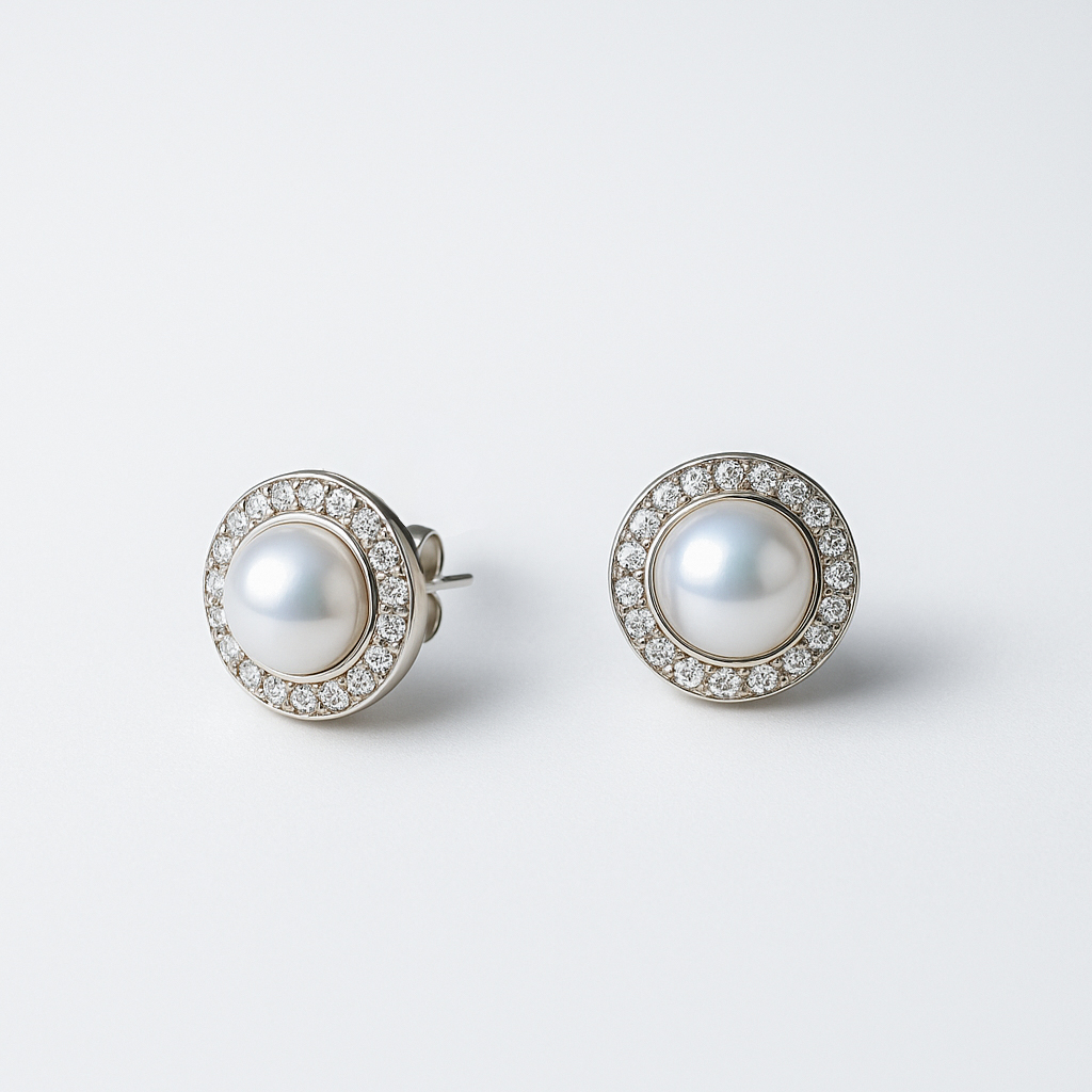 Women’s Earrings Freshwater Pearl Halo Set Studs – Framed Sparkle in a Classic Silhouette