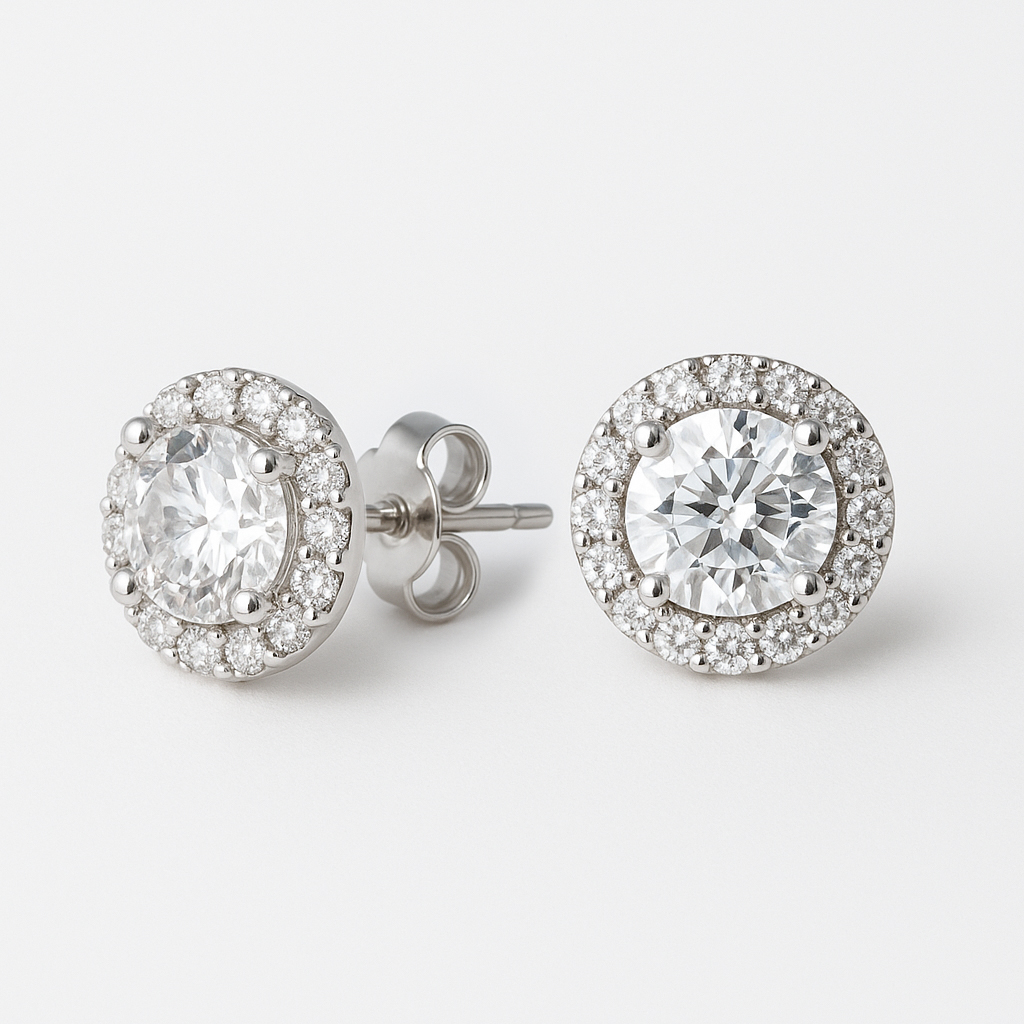 Women’s Earrings Halo Studs – Framed Sparkle in a Classic Silhouette