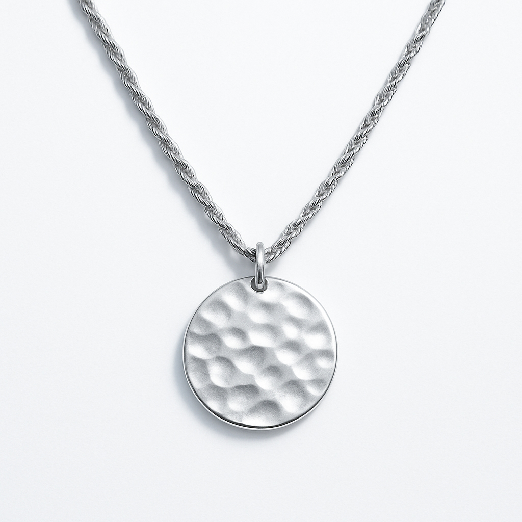 Women’s Necklace Round Dimpled Circle Pendant