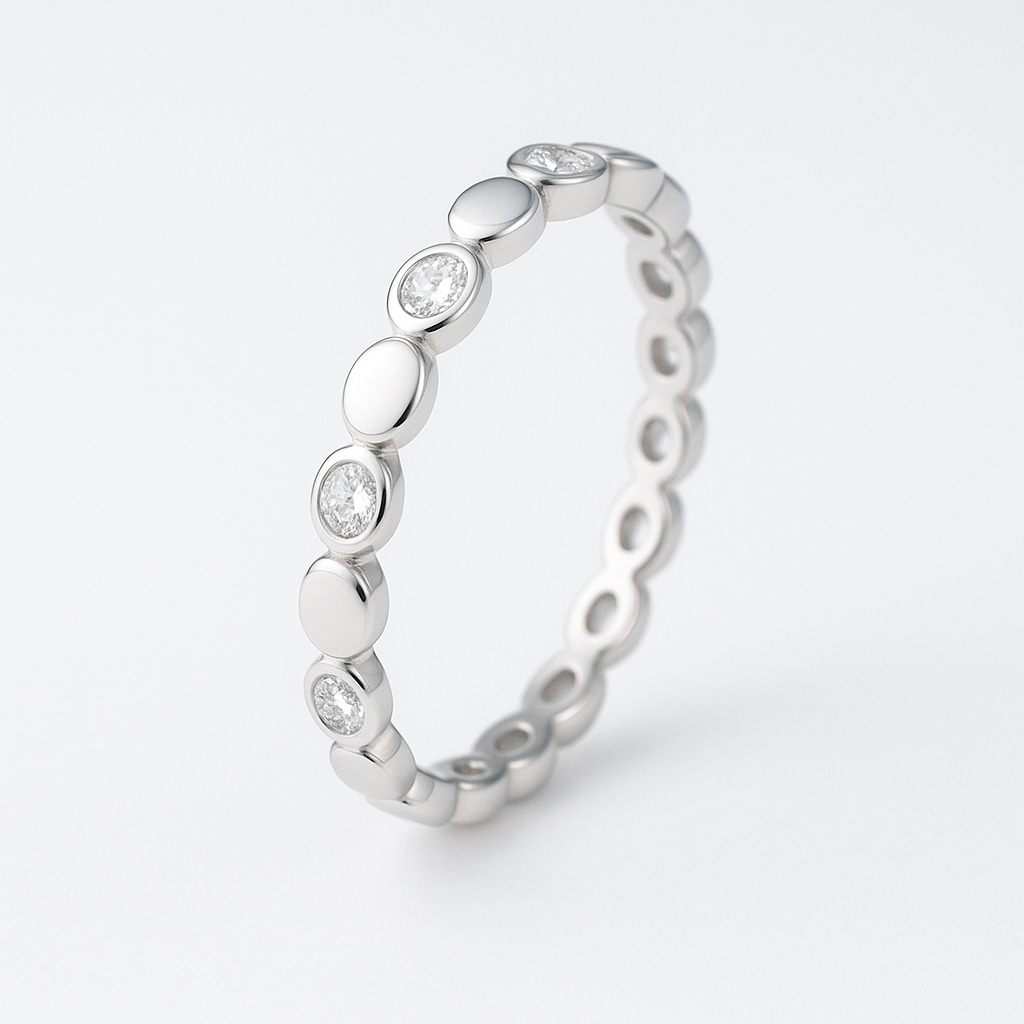 Bohemian style stackable ring, 925 Silver rhodium plated adorned with Cubic Zirconia.