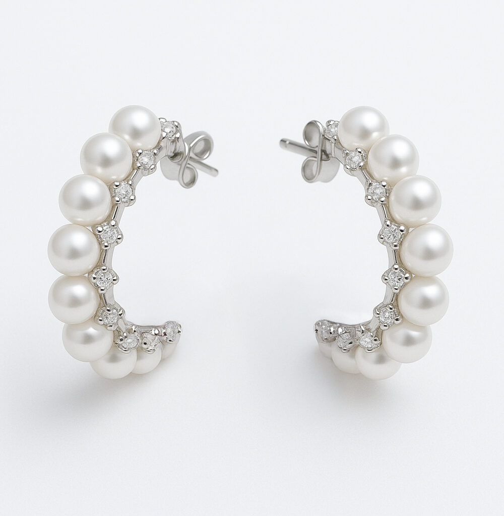 Women’s Earrings Half Hoop Pearl Style Stud