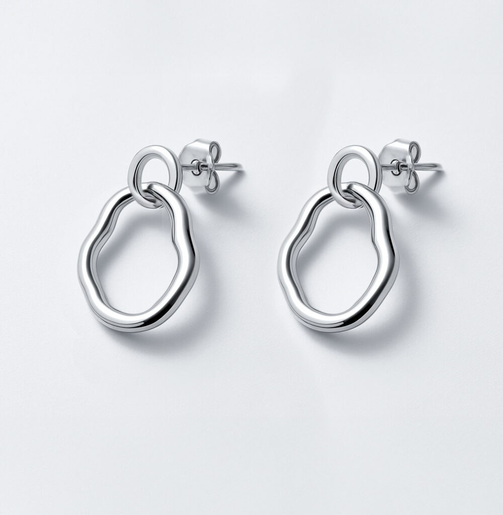 Women’s Earrings Irregular Circle Stud – Abstract Circle Design in 925 Sterling Silver