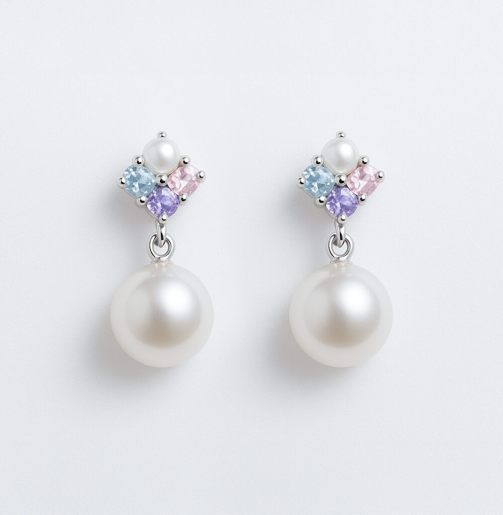 Women’s Earrings Freshwater Pearl 3 Stone Drop Earrings