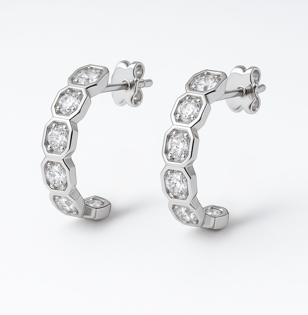 Women’s Earrings Honeycomb Set Stud – Geometric Sparkle for Daily Wear