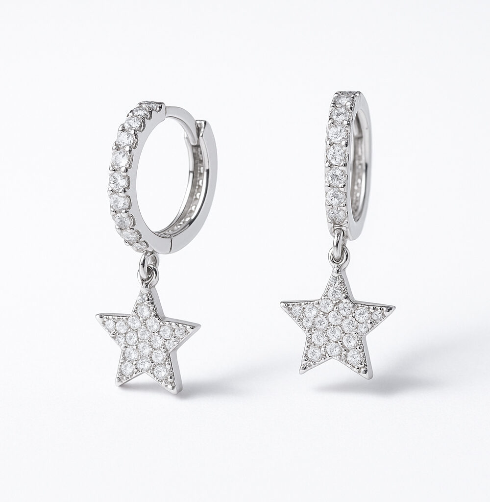 Women’s Earrings Half Eternity Mini Hoop Star Pendant