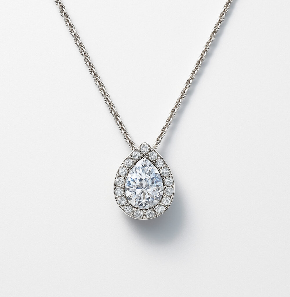 Women’s Necklace Pear Cut Stone Halo Set Pendant